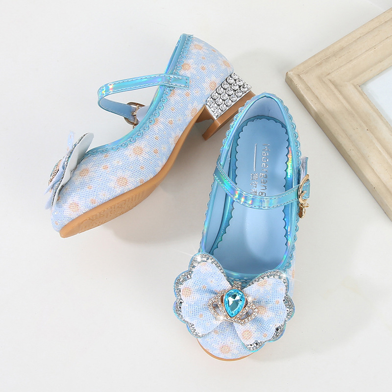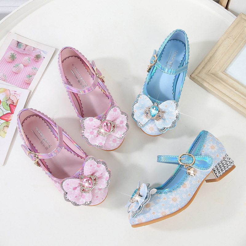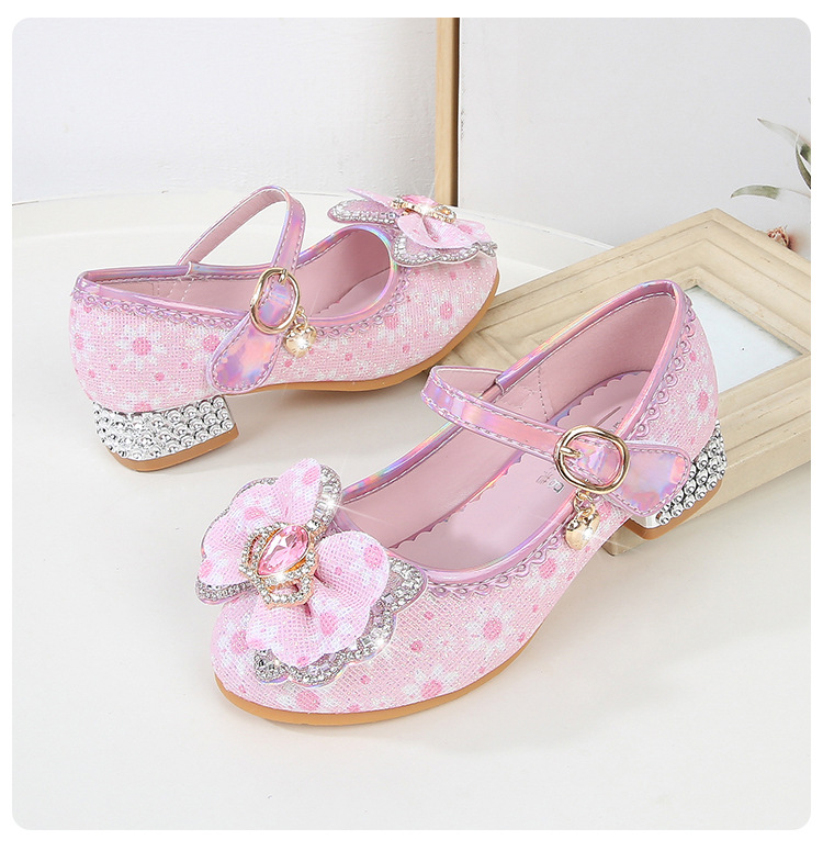 Giày công chúa cao gót cho bé gái 3-9 tuổi mẫu mới 2024 được thiết kế rất thời trang với sự kết hợp nơ đá hình vương miện sáng lấp lánh tạo điểm nhấn, chất da pu in hình hoa xinh xắn mới lạ cho mẫu giày công chúa năm nay, lòng giày mềm mại êm chân cho bé. Gót giày vuông cao 2,5cm giúp bé dễ dàng thoải mái làm điệu và diện những chiếc đầm công chúa yêu thích. Đế chống trơn trượt tốt, chống mài mòn, chống uốn và gấp.
