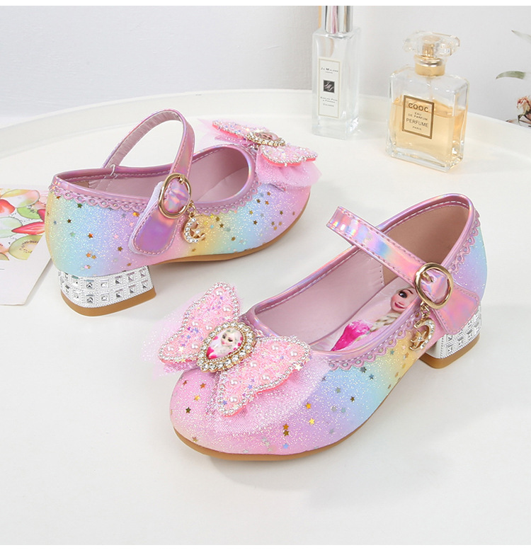 🌼Giày cao gót công chúa Elsa cho bé gái 3-9 tuổi - chất liệu cao cấp êm chân mẫu mới 2024 được thiết kế rất thời trang với sự kết hợp nơ và huy hiệu elsa, chất da pu phủ kim tuyến mịn nhiều màu và lòng giày mềm mại êm chân cho bé. Gót giày vuông cao 2,5cm giúp bé dễ dàng thoải mái làm điệu và diện những chiếc đầm công chúa yêu thích. Đế chống trơn trượt tốt, chống mài mòn, chống uốn và gấp.