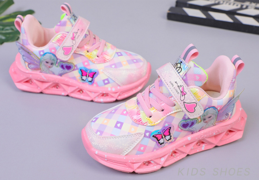 Giày thể thao công chúa Elsa cho bé gái 3-10 tuổi có đèn chất da pu mềm
