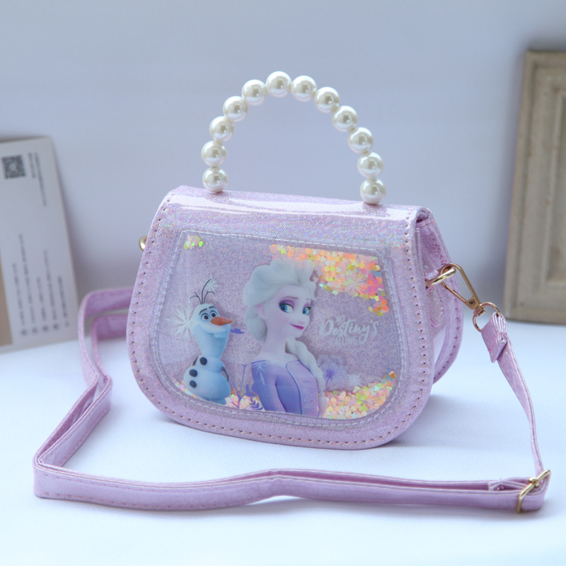🍁 Quai xách là hạt trân châu xinh xắn, dây đeo bằng da có điều chỉnh ngắn dài cho bé, dáng hộp đứng form, màu sắc tươi tắn,họa tiết công chúa #Elsa, #Anna đáng yêu, dễ thương. Dễ phối những bộ trang phục bé mặc, giúp bé điệu đà.
