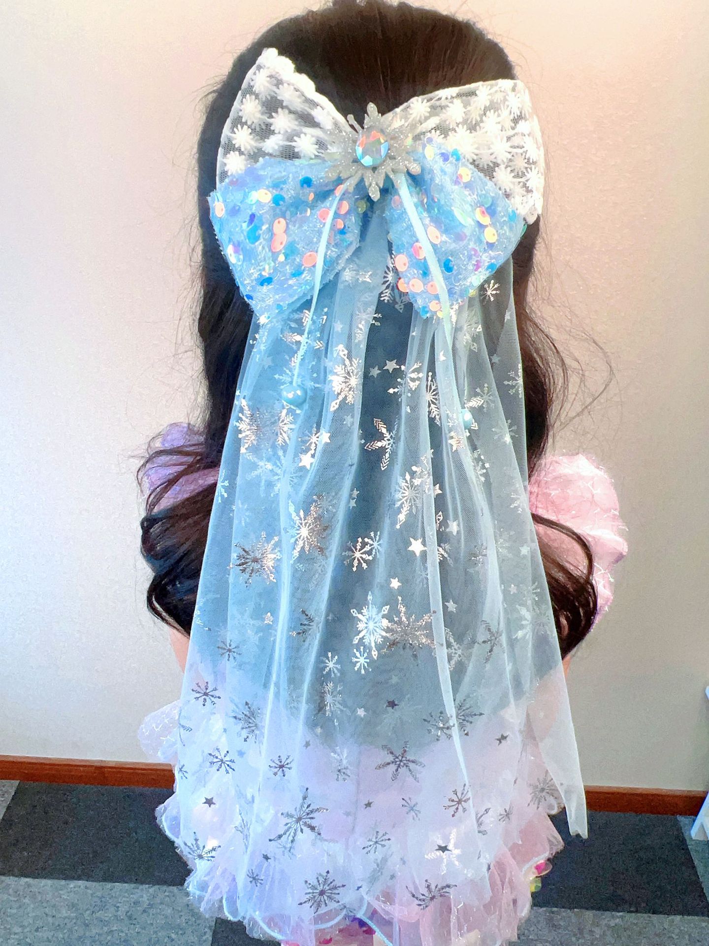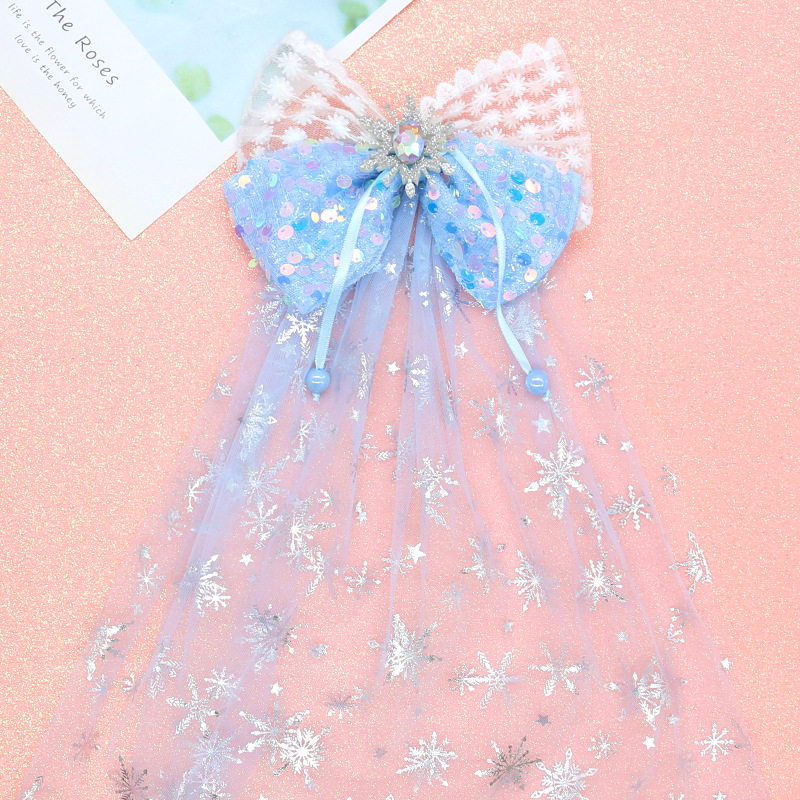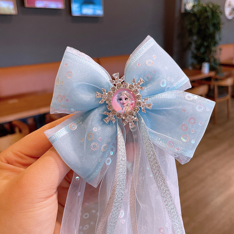⭐️ Thiết kế nơ màu xanh, hồng kết hợp hình elsa nhỏ và những dây ruy băng dài xinh xắn. Kẹp tóc cho bé thêm xinh xắn và đáng yêu khi đi dự tiệc, đi sinh nhật, đi chơi, đi học...