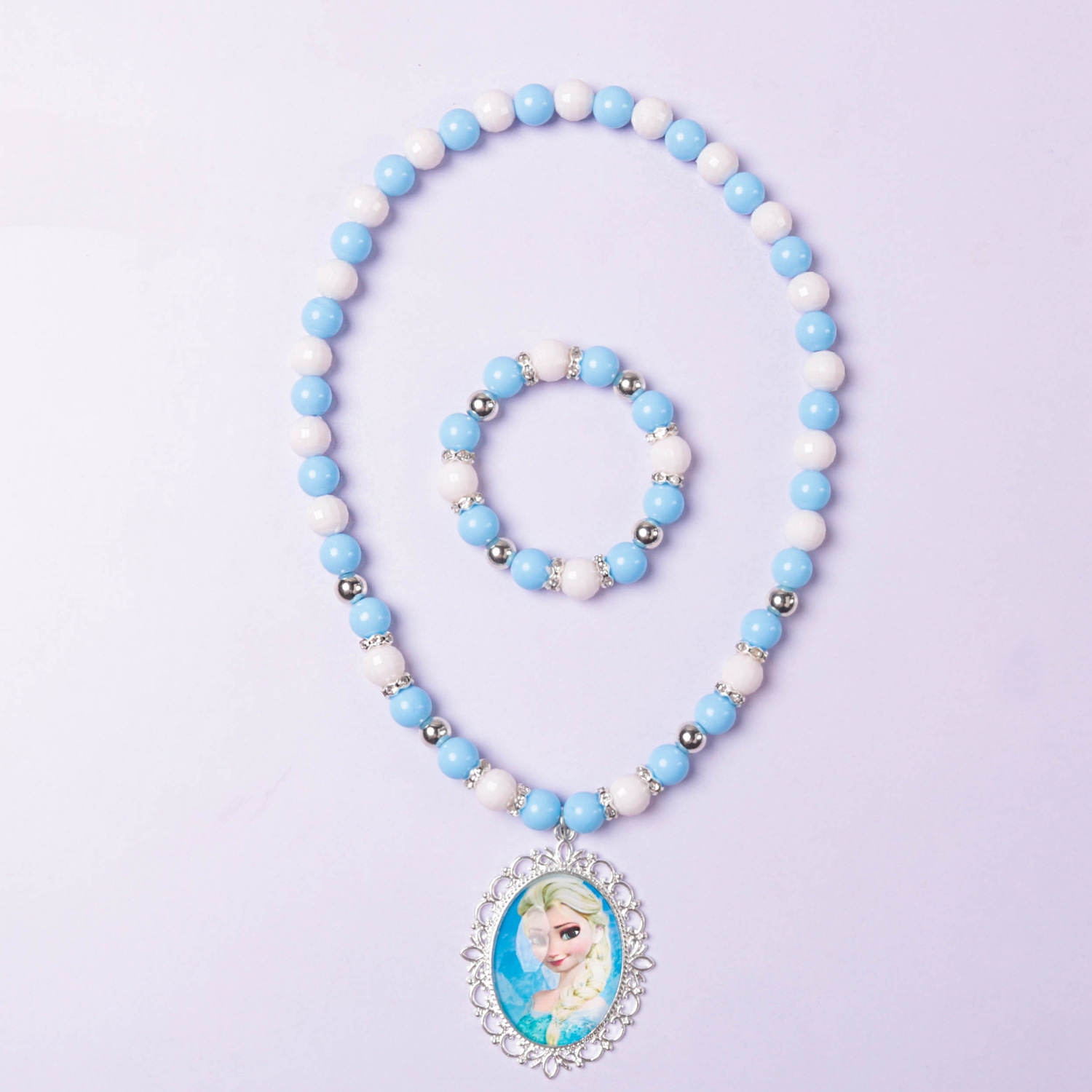 Bộ sản phẩm gồm có vòng tay và vòng cổ in hình elsa là những món đồ trang sức đẹp mắt giúp bé trở thành nàng công chúa Elsa xinh xắn, bé sẽ nổi bật trong buổi tiệc hoặc lễ hội hóa trang thành công chúa Elsa…