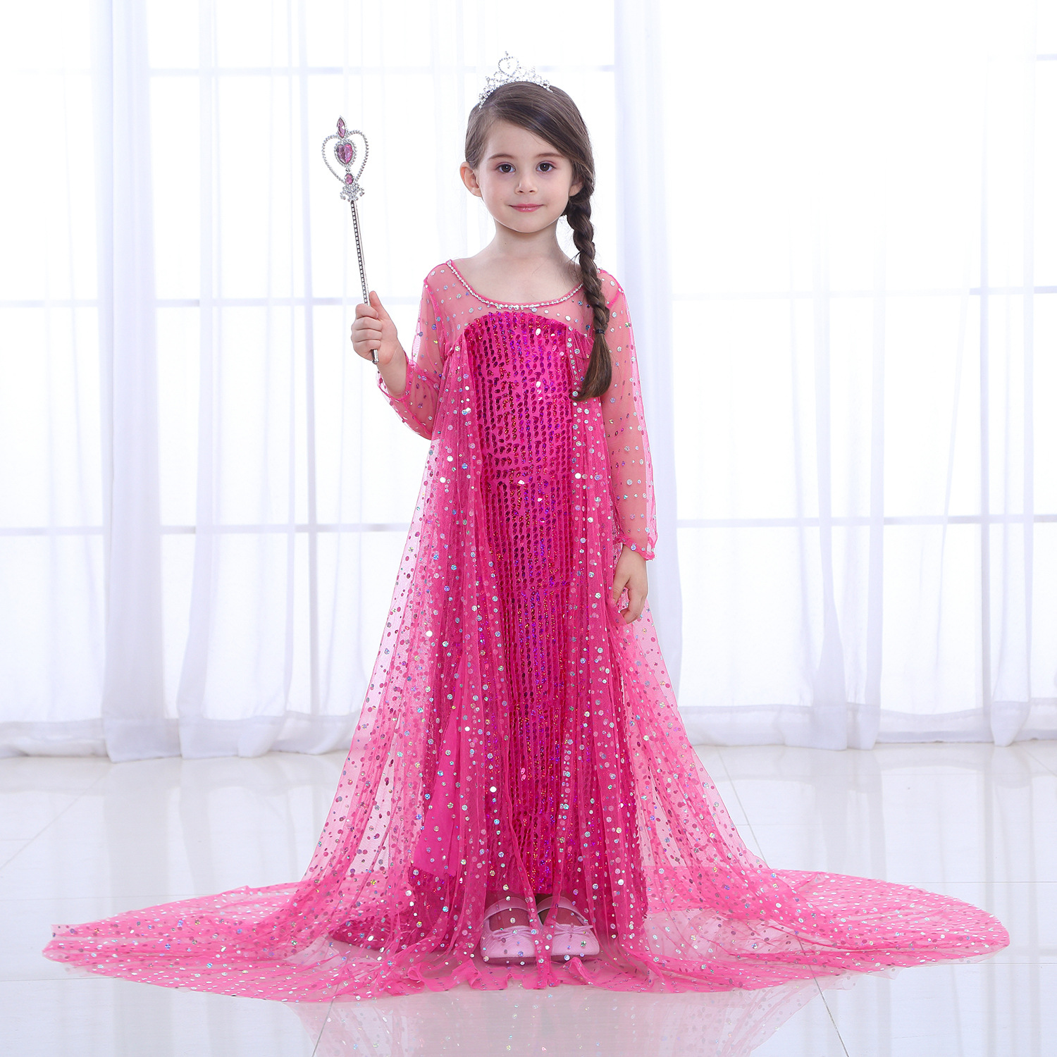 Váy công chúa Elsa màu hồng tà dài siêu dễ thương cho bé gái