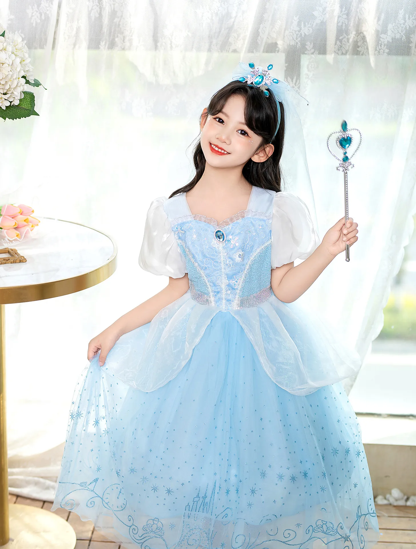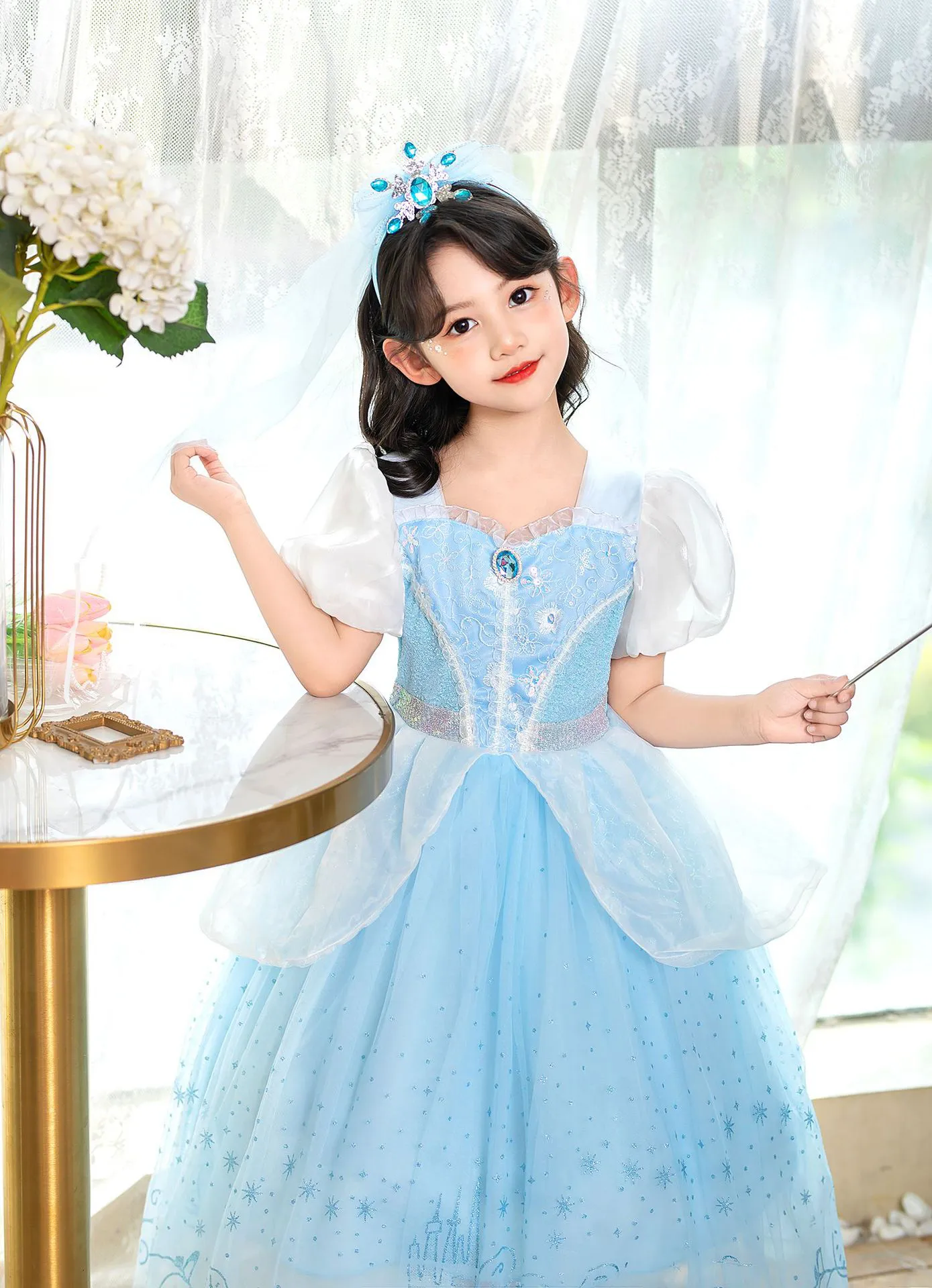 🌻 Một chiếc váy được lấy cảm hứng từ vẻ đẹp và phong cách của Elsa, công chúa băng giá trong bộ phim "Frozen", cùng với nét duyên dáng và mộng mơ của Lọ Lem, nhân vật trong câu chuyện cổ tích. Bé có thể hóa thân thành 2 nhân vật là Nữ hoàng Elsa hoặc là công chúa Lọ lem (Cinderella) .