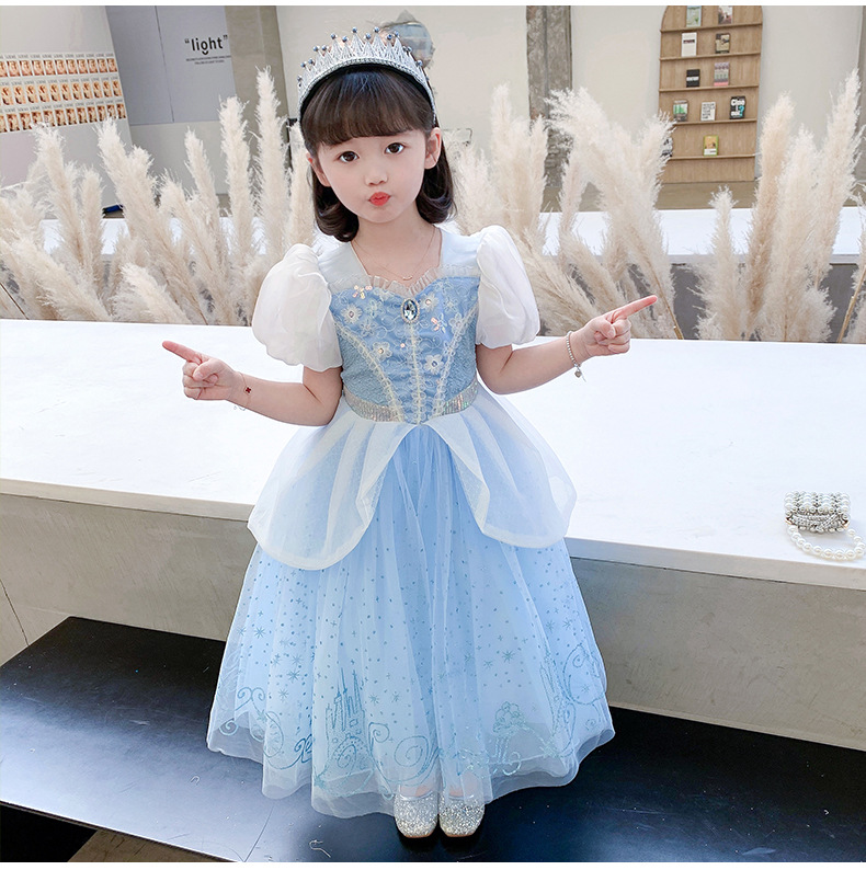 🌻 Chiếc váy này có màu xanh nhạt, màu chủ đạo của Elsa, để tạo ra vẻ đẹp đáng mơ ước của công chúa băng giá. Tuy nhiên, vùng eo và váy xòe dưới đây sẽ được làm từ chất liệu voan mềm mịn chân váy họa tiết lâu đài, cổ xe ngựa tượng trưng cho vẻ đẹp trong sáng của Lọ Lem. Chất vải voan mềm mịn siêu đẹp, thiết kế tay bồng điệu đà, chân váy kiểu dáng công chúa bồng bềnh 4 lớp siêu xinh (lót trong cùng vải cotton thoáng mát)